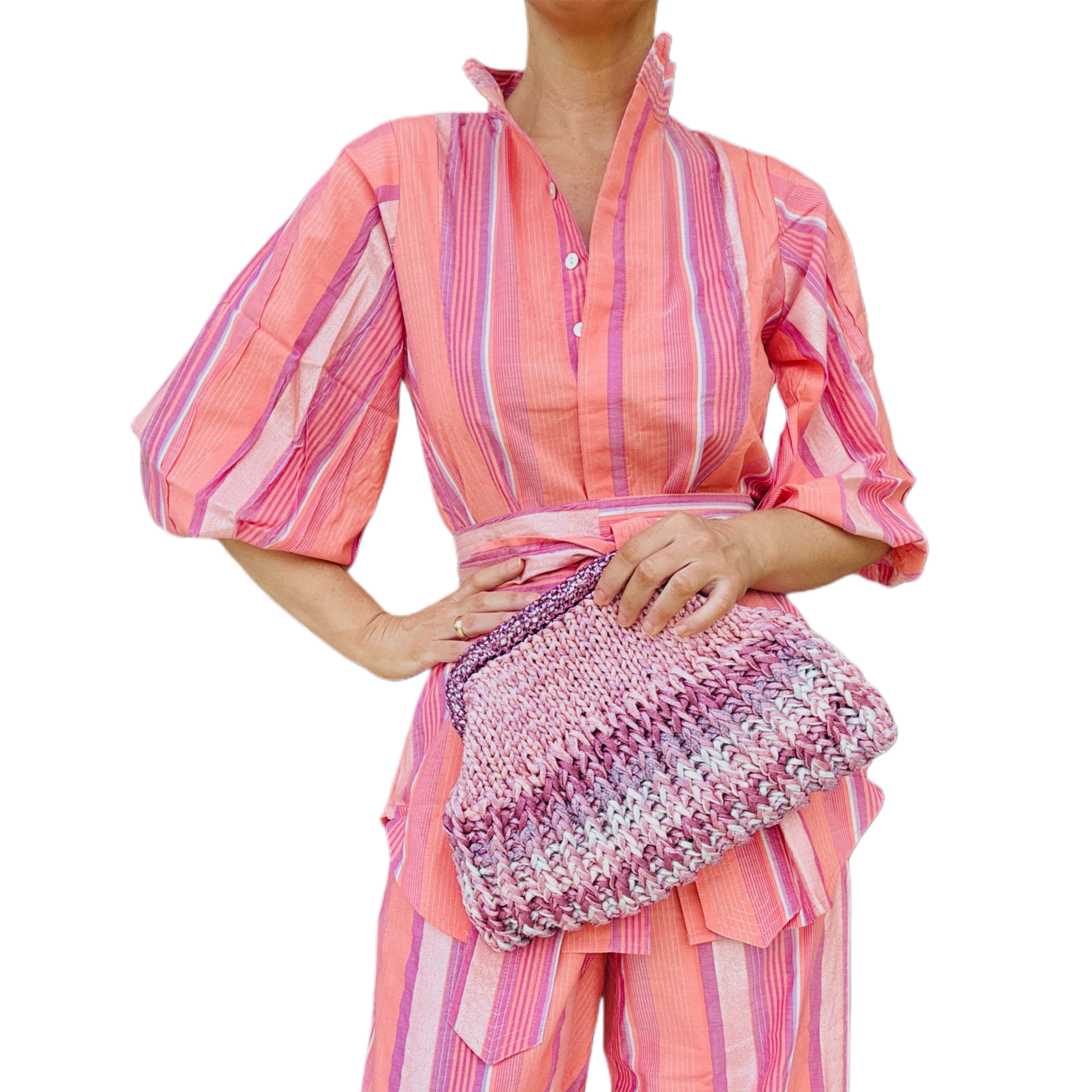 This season’s must-have: the Balloon Sleeve Belted Shirt can be paired with the Wide-Leg Pants – sold separately but designed to make a statement together. Crafted from 100% cotton with a touch of lurex, this set brings effortless style with a subtle shimmering glow.