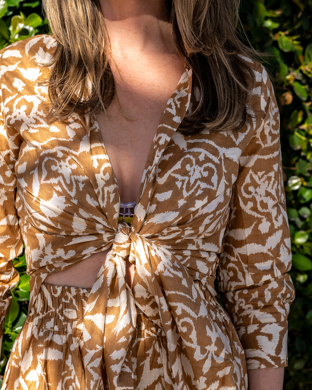Limited Edition Effortless elegance meets timeless style. Our Cappuccino Floral Tie Top is crafted from 100% cotton, offering breathable comfort with a chic, feminine silhouette.