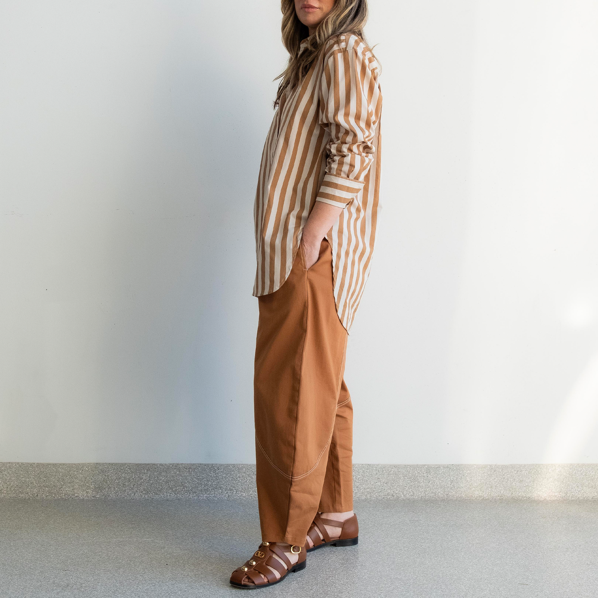 Cognac Wide Stripe Dress Shirt with French Cuff detail