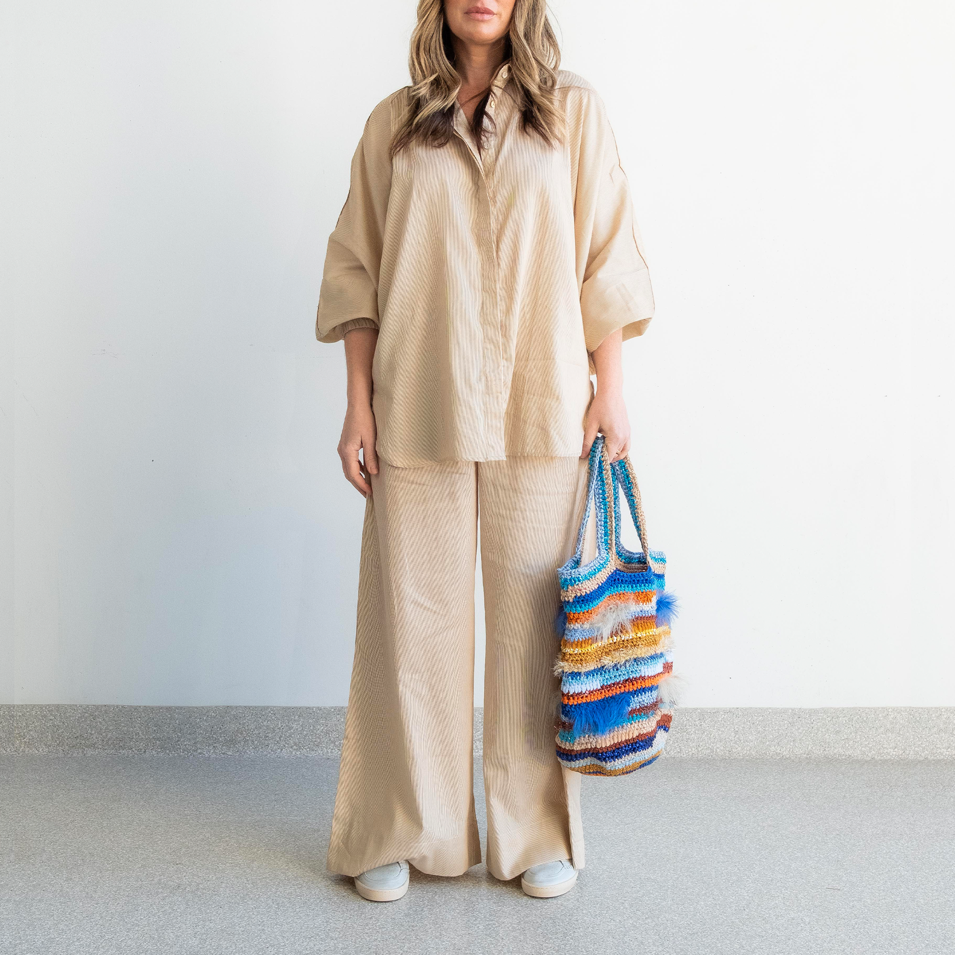 Desert Thin Stripe Wide leg pant 100% premium cotton with silk finish