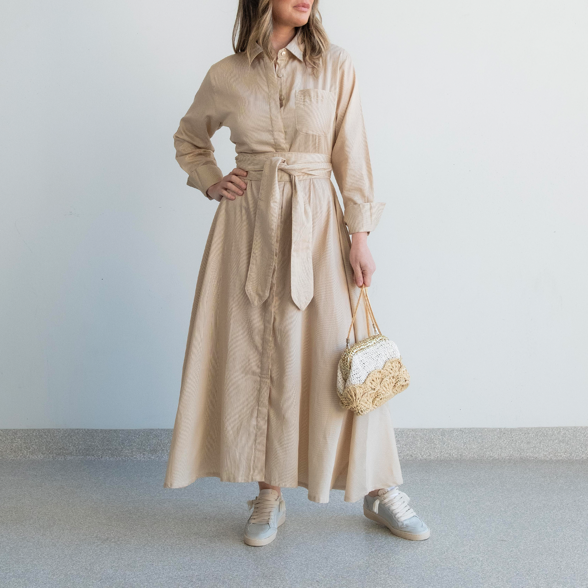 Dessert Stripe French Cuff Panel Dress with Belt 100% Premium Cotton    Max 5 x size in this capsule collection / Collar / French cuff / Pockets / Belt / Machine Wash