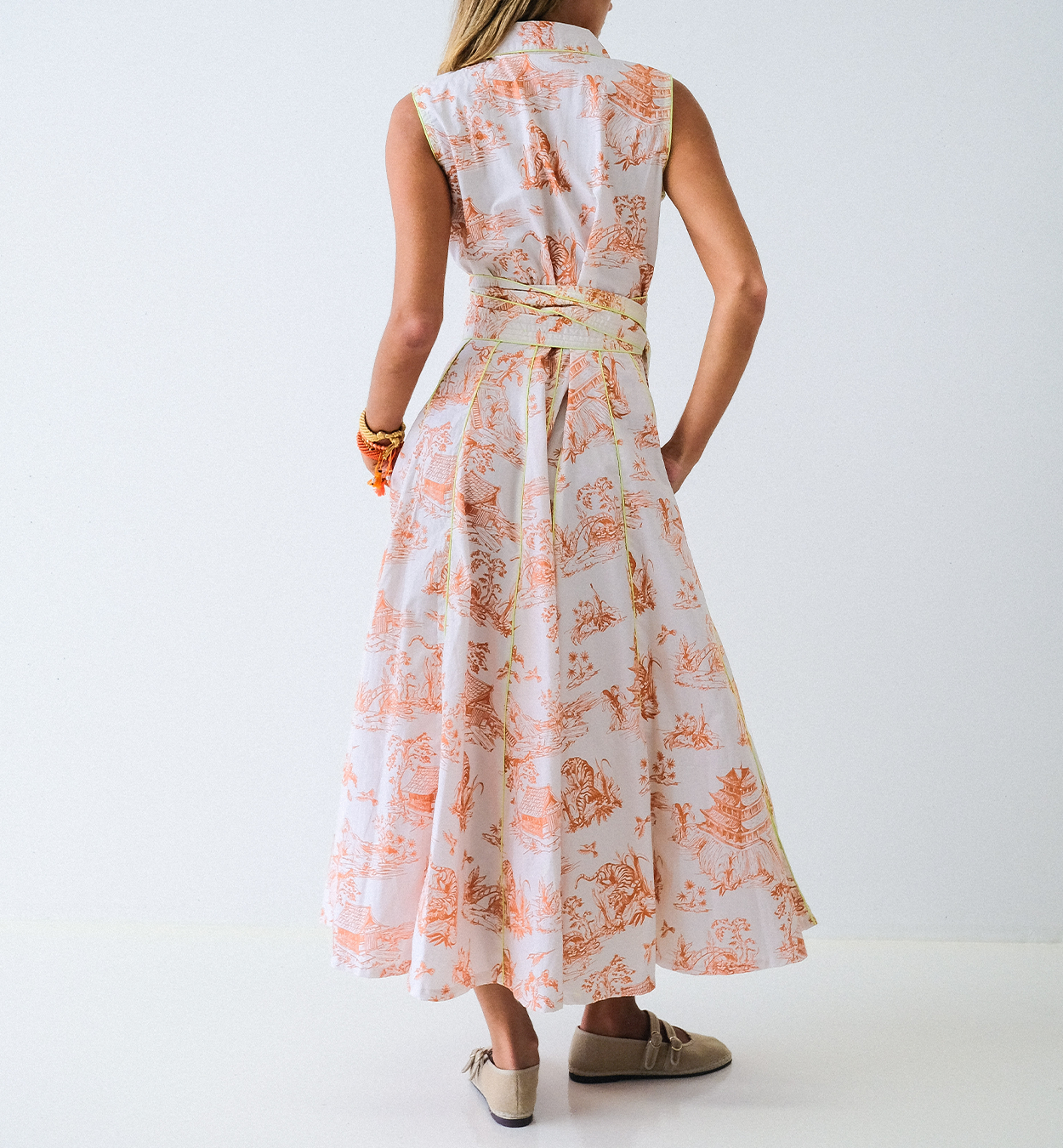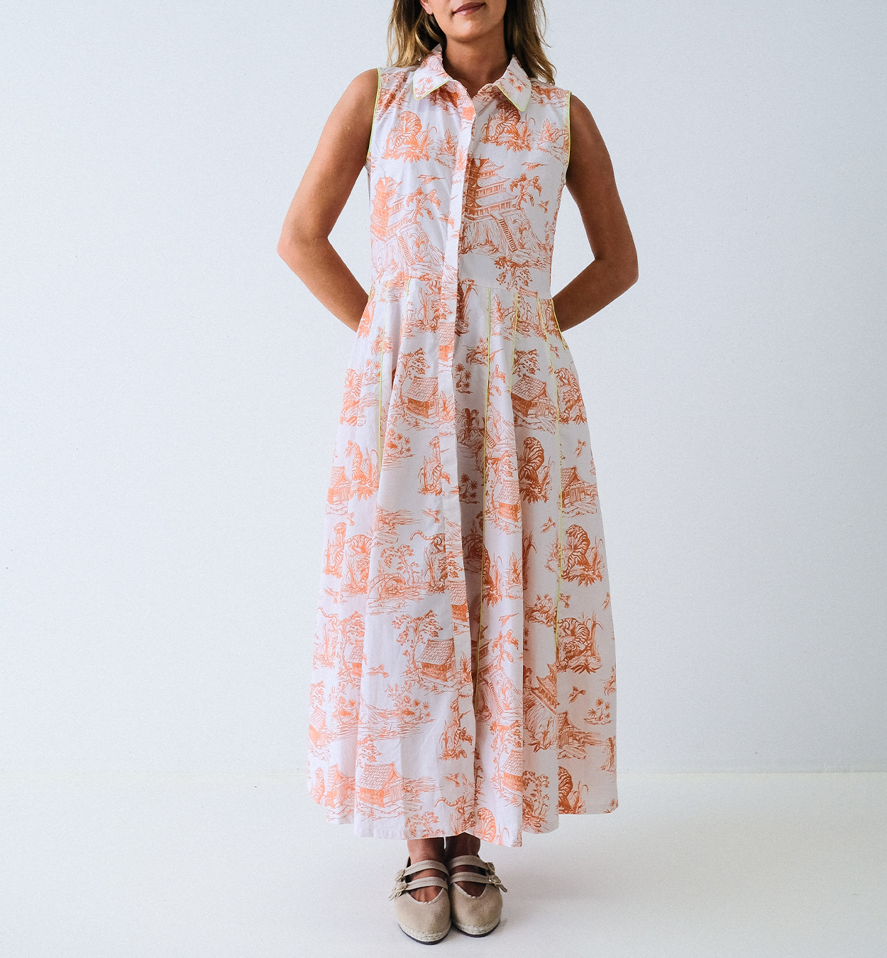 Orange Toile Chinoiserie Sleeveless Panel Dress