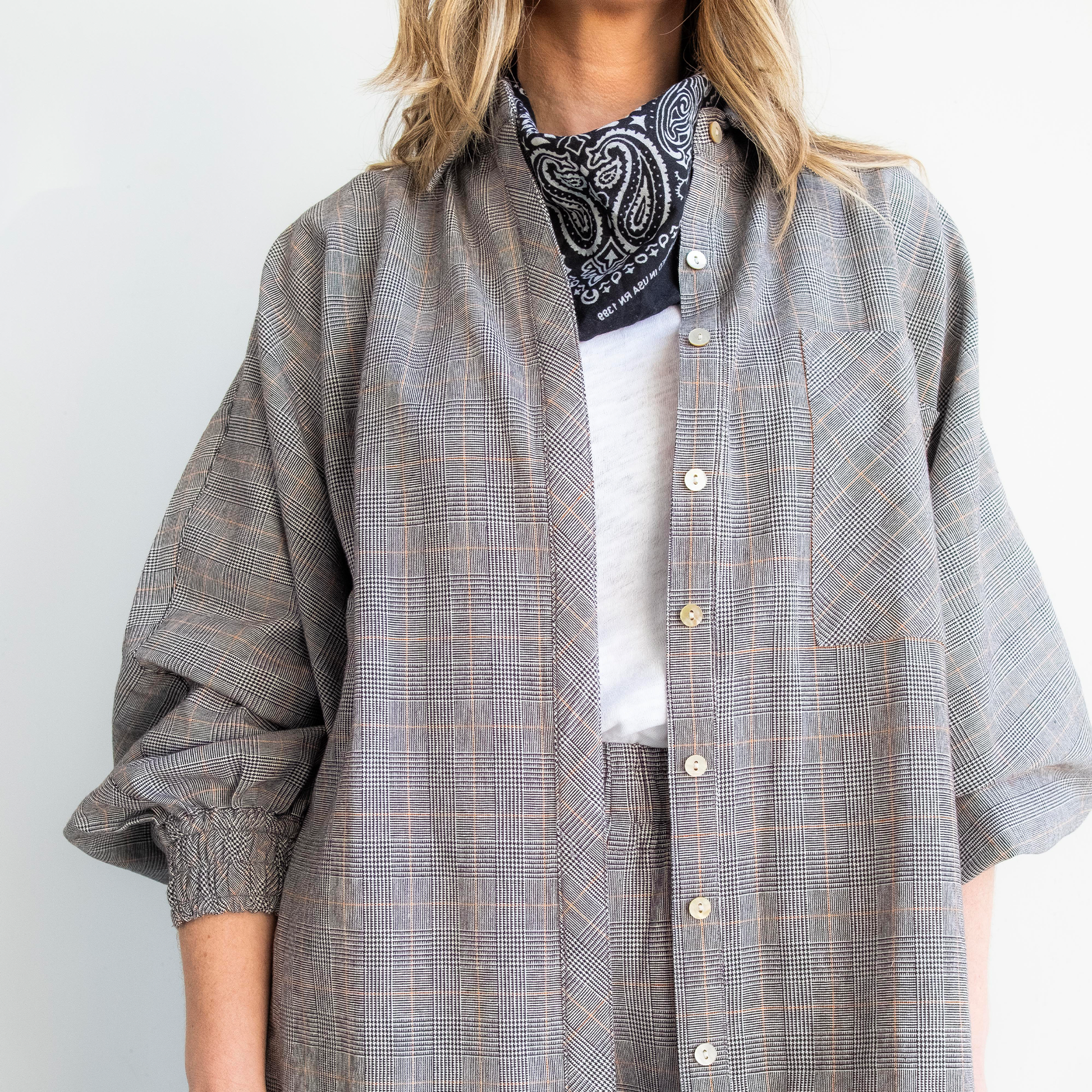 Butterfly shirt silhouette with pocket and elasticated cuff.